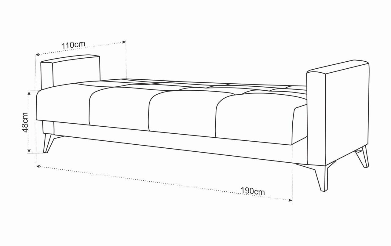 Méretek: A kanapé 110x190 cm-es fekvőfelülettel rendelkezik, így ideális váratlan vendégek számára.