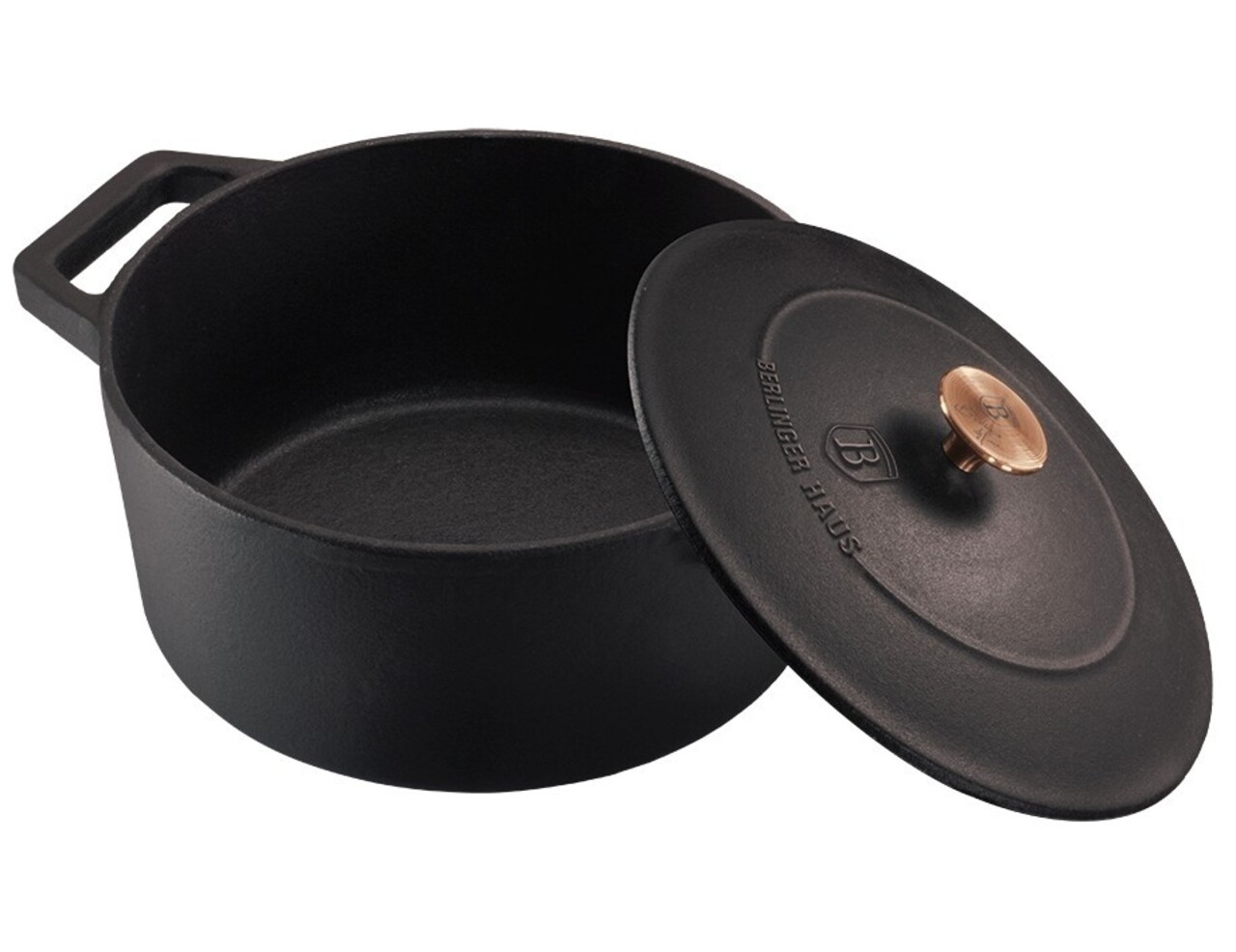 Fazék fedővel, Berlinger, Matt Black, 24 cm Ø, öntöttvas, fekete