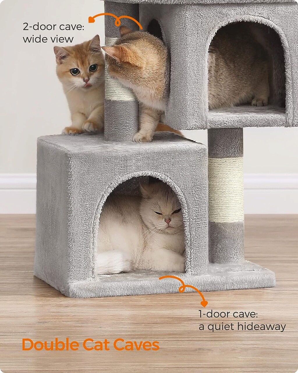 2 macskabarlang A 2 bejárattal rendelkező felső barlang hatalmas kilátást és könnyű hozzáférést biztosít. Az alsó, egyajtós alsó barlang csendes búvóhely az alvók számára, ahol szundikálhatnak, és kiválóan alkalmas a még ugráláshoz szoktatott cicák számára is.