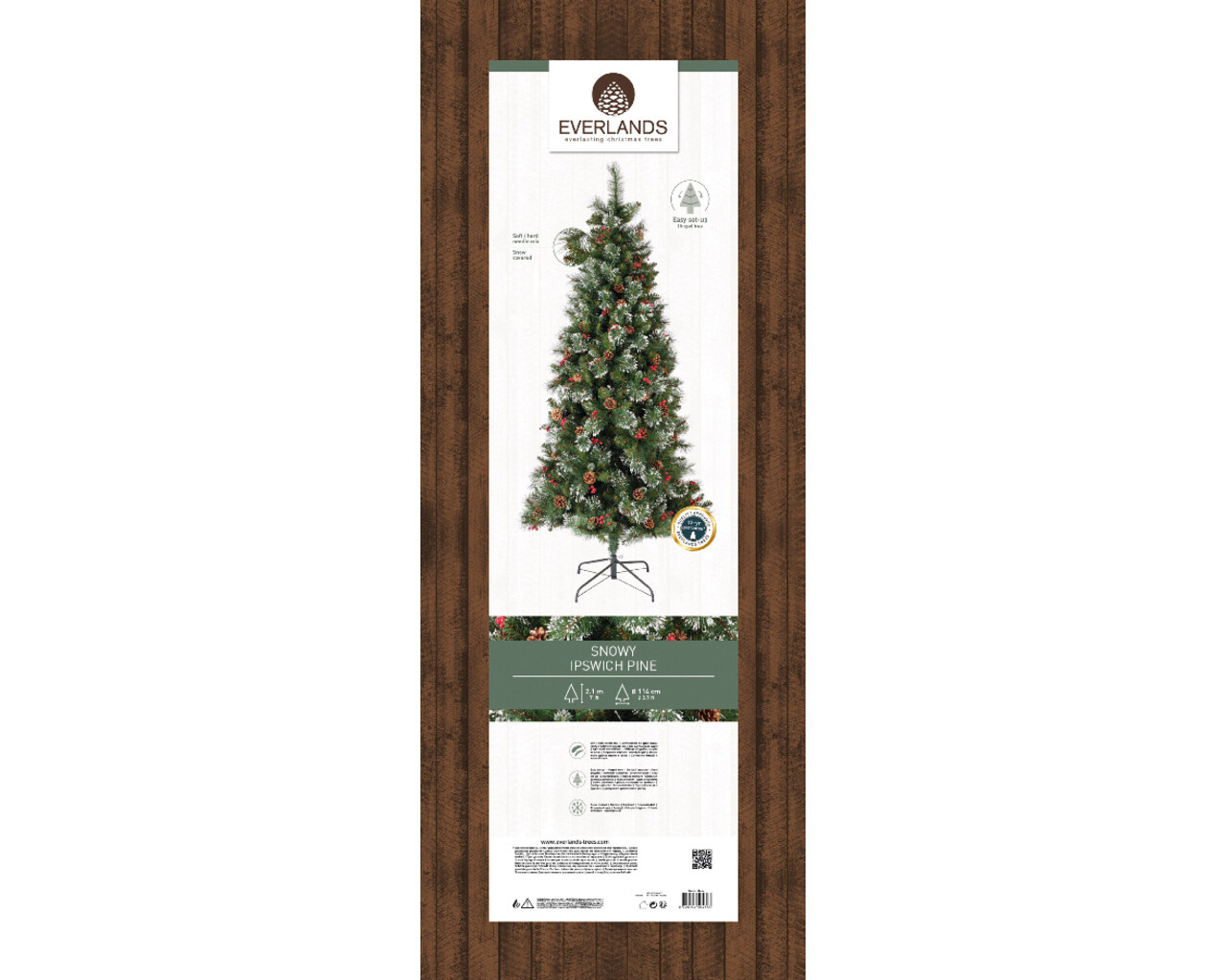 Fenyő Pine snowy, Díszek, 112x210 cm, zöld