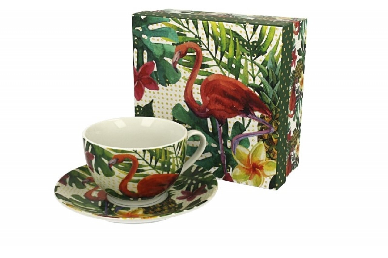Flamingo Csésze kistányérral, Duo, 250 ml, porcelán, sokszínű