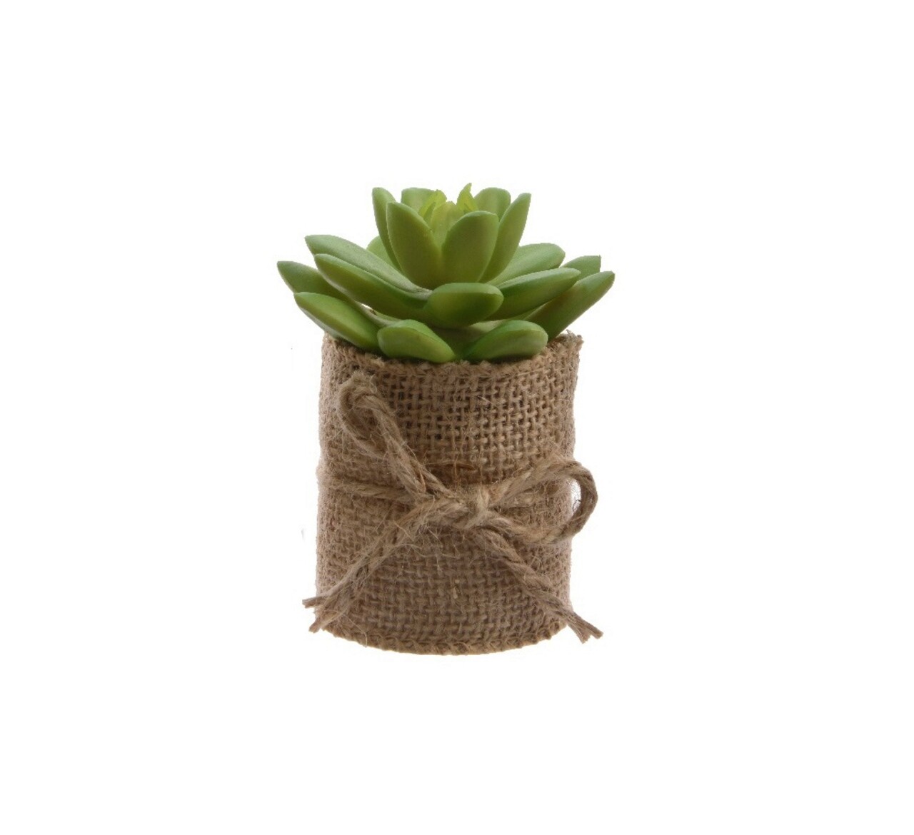 Floare artificiala in ghiveci Succulent v2, Decoris, 5 x 5 x 12 cm, plastic/iuta, verde