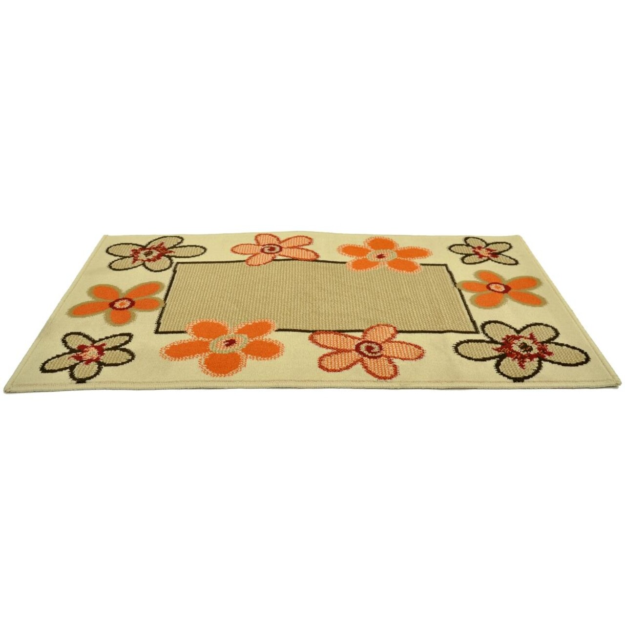 A szőnyeg a legmagasabb minőségű polipropilénből készült, 7 mm-es fonallal, téglalap alakú, világos, természetes színekkel, feldobja a belső teret, és kényelemmel és színekkel melegíti fel. A narancssárga, barna és piros színű nagy, stilizált virágok optimizmust, jó ízlést és modernitást sugallnak. A barna zsenília és a színes virágok világos bézs alapon helyezkednek el, és téglalap alakú formájának köszönhetően tágas nappaliba és modern hálószobába egyaránt illik. Padlófűtéshez is alkalmas.