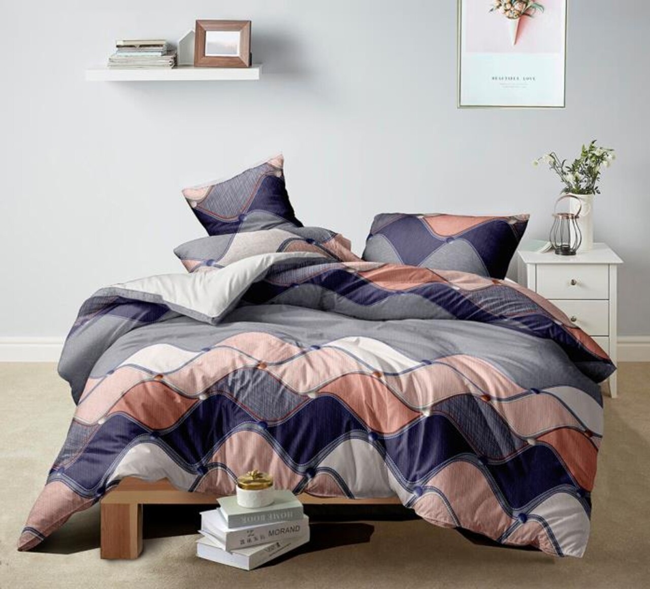 Francia ágynemű, King Size, 4 db, BS002, polipamut, többszínű