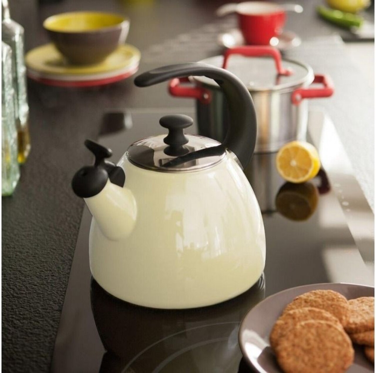 Zománcozott teáskanna 2,5 l űrtartalommal. A vízforraló szénacélból készült, kívül és belül zománcozott bevonattal, rozsdamentes acél fedővel és bakelit fogantyúval. Mindez egy nagyon szép, modern dizájnt alkot, amely többféle színben kapható. Kedvenc italát bármilyen típusú tűzhelyen elkészítheti, beleértve az indukciós tűzhelyet is.