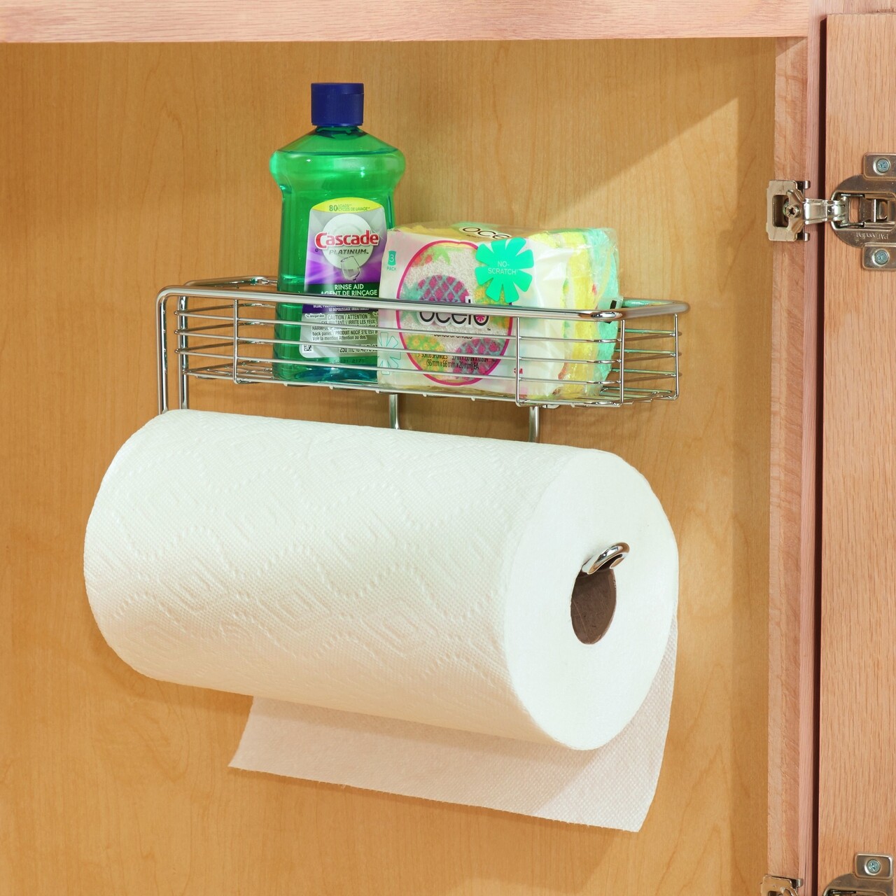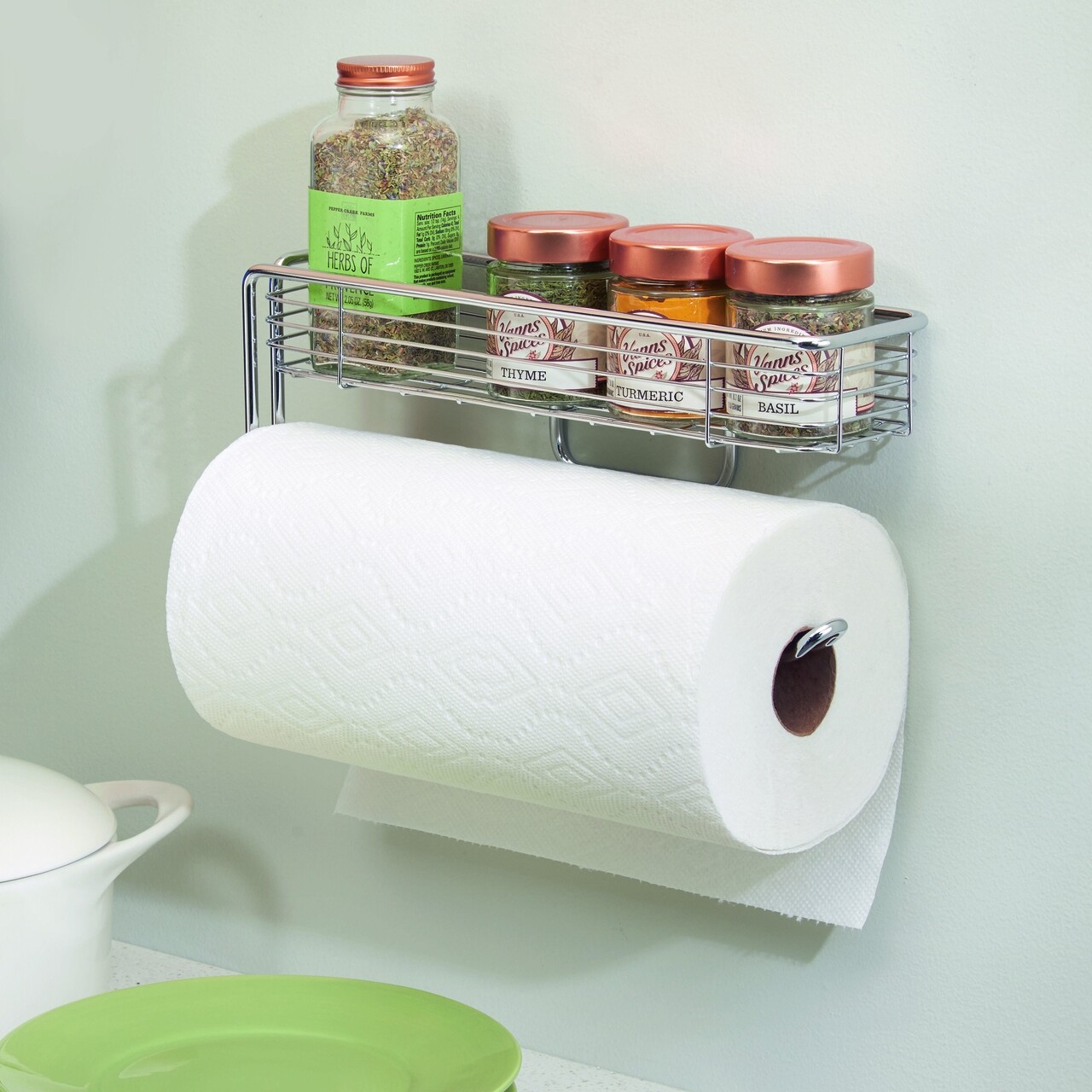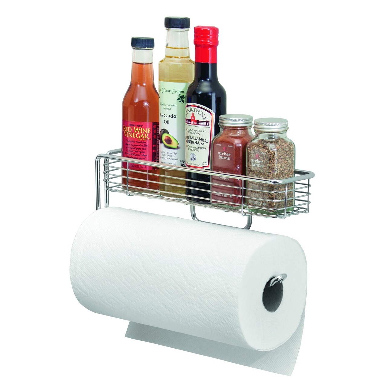 Fűszertároló polc Lineo konyhai törlőkendő tartóval, iDesign, 30,5x16,5x61 cm