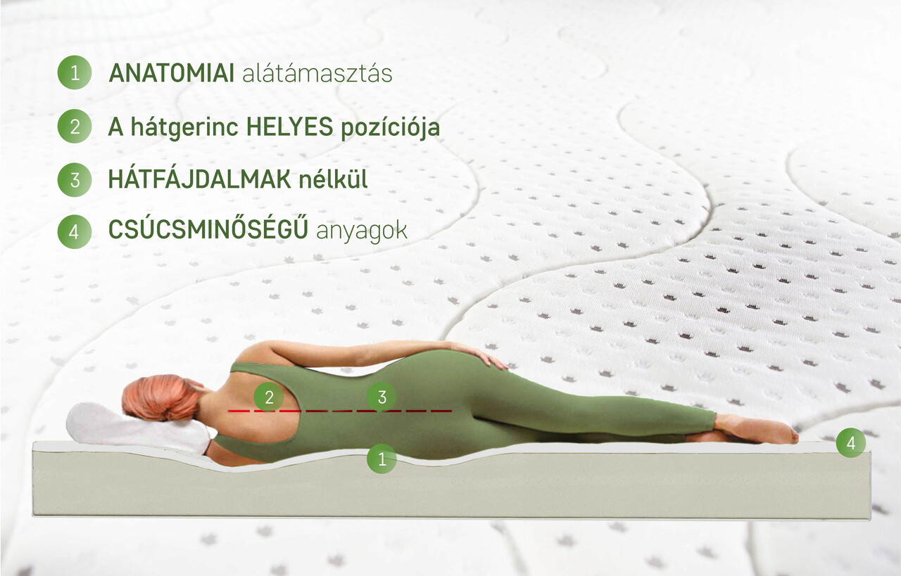 • Alkalmas minden alvási helyzethez: háton, oldalon és hason
