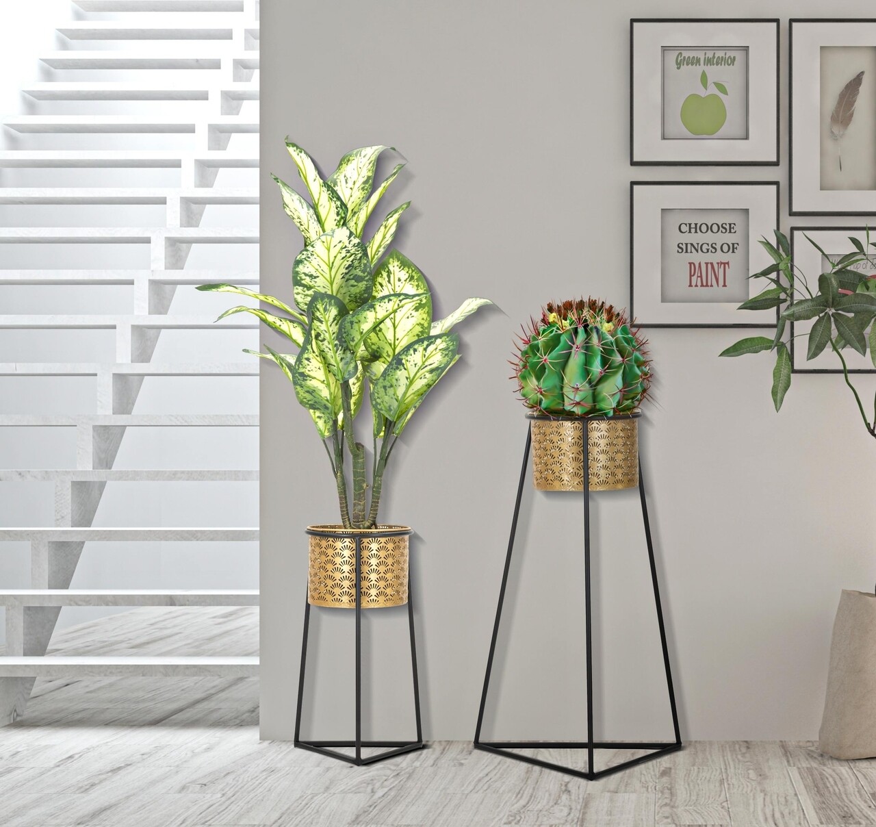 Glax 2 db Virágcseréptartó, Mauro Ferretti, vas, fekete/aranyszín