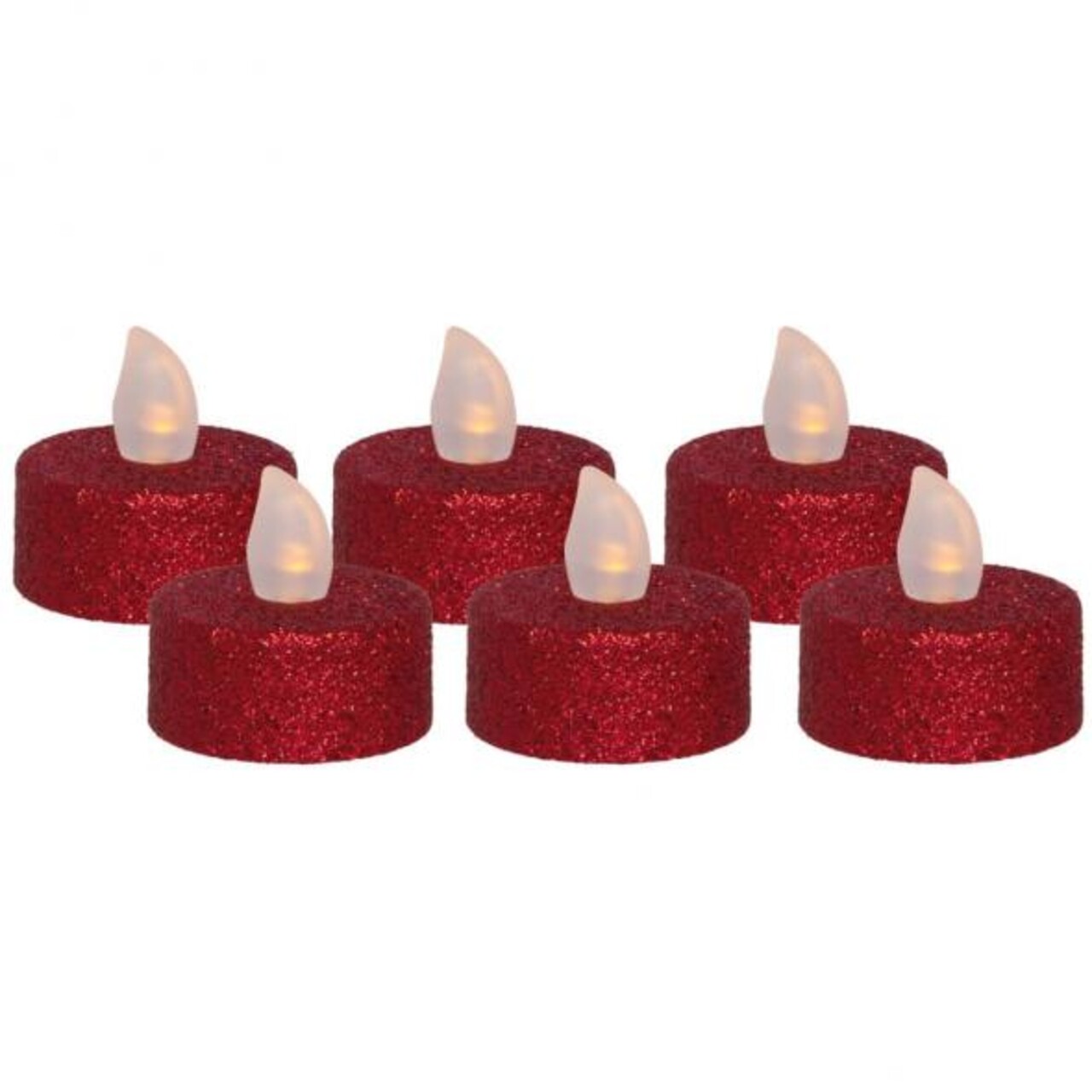 Glitter 6 db Gyertya LED-el, 3.8x4 cm, piros