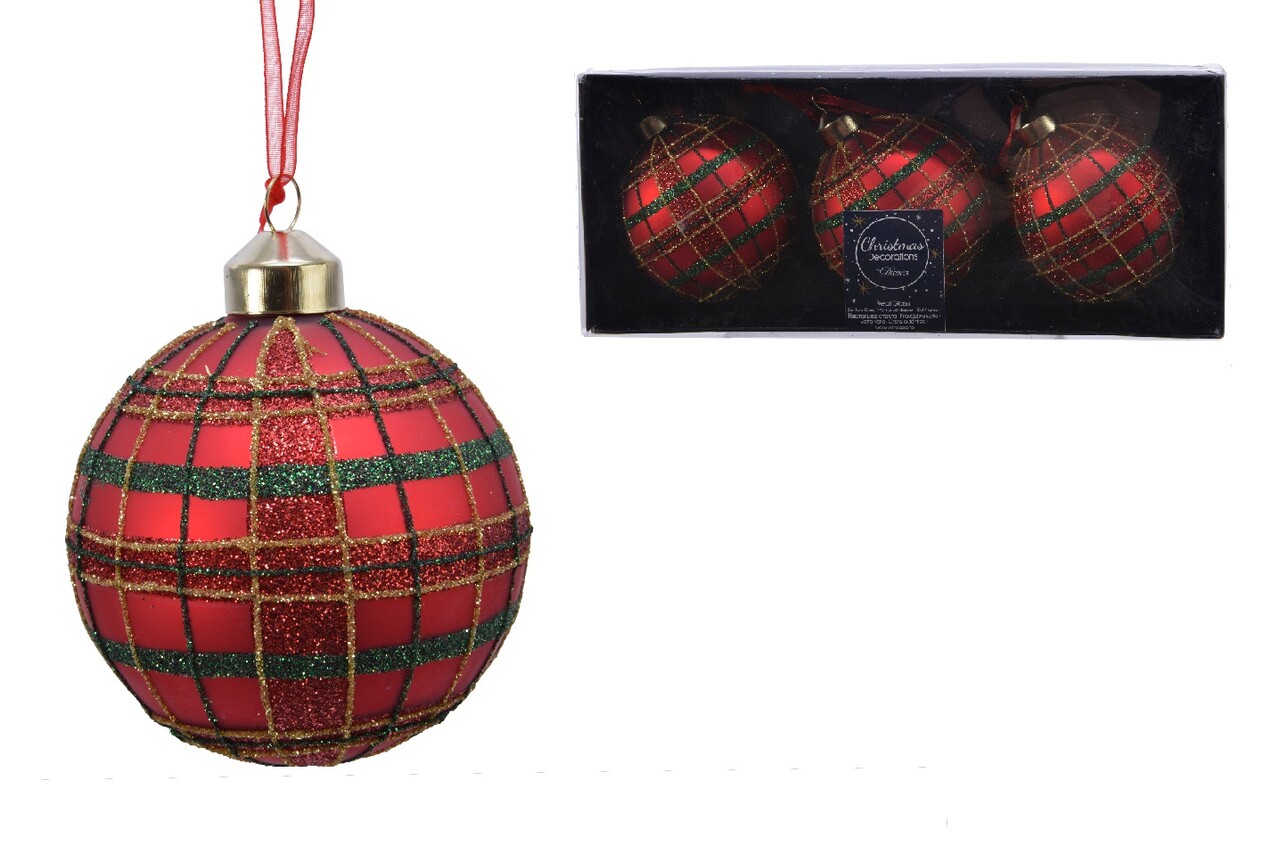 Glitter check 3 db Díszgömb, Decoris, Ø8 cm, üveg, piros