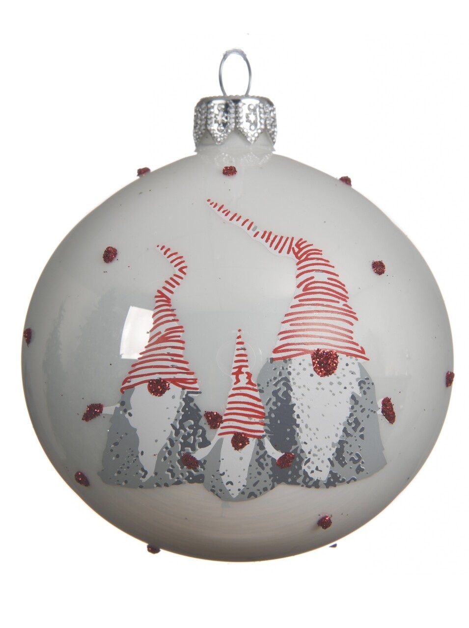 Gnome Gömb, Dekorációk, Ø8 cm, üveg, fényes ezüst