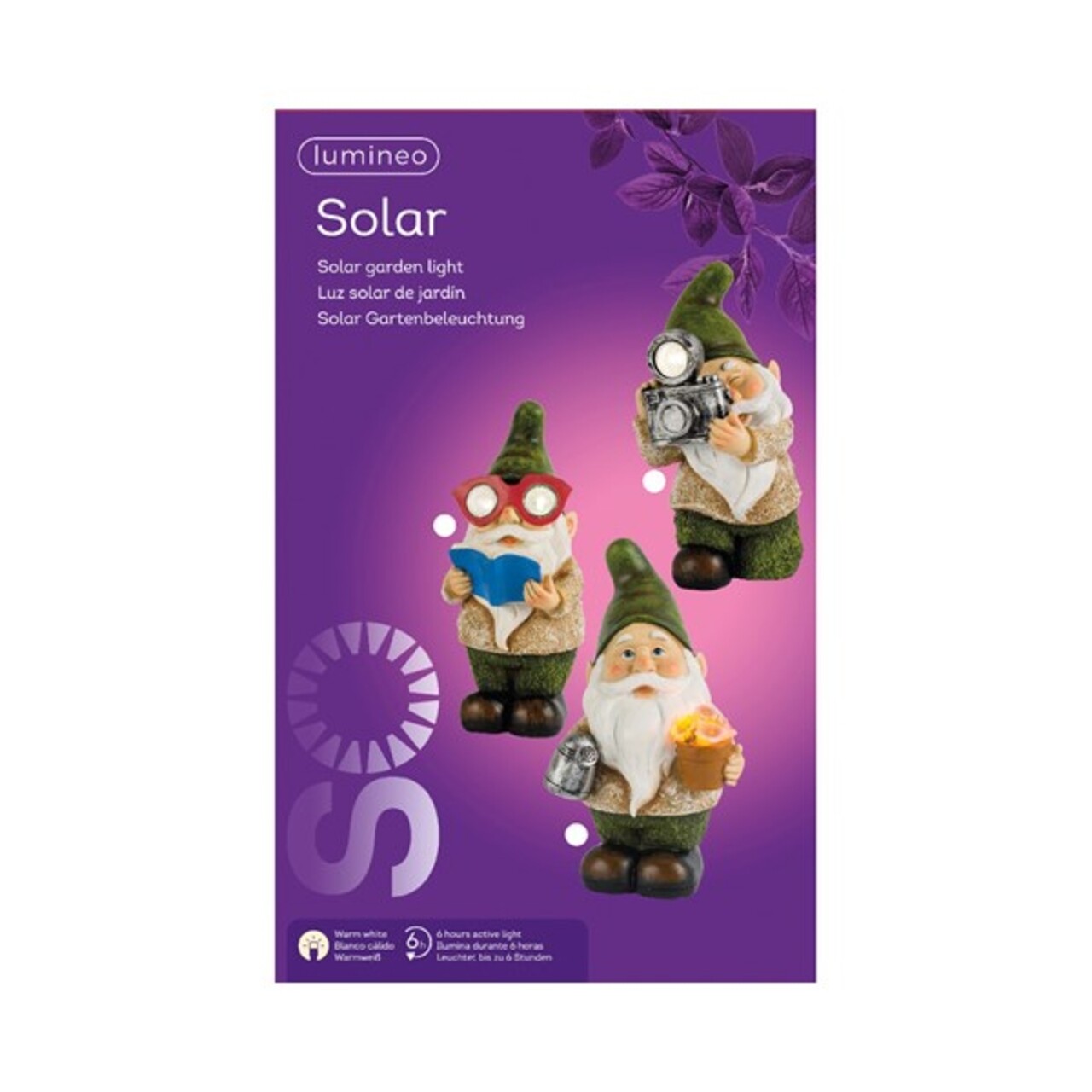 Gnome w book Kerti lámpa, Lumineo, 11.5x13x25 cm, poligyanta, színes