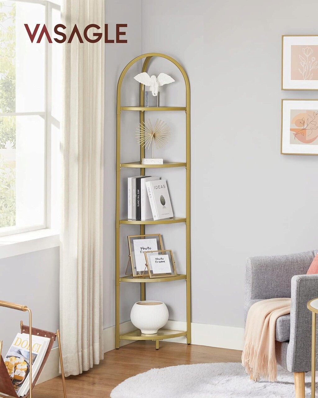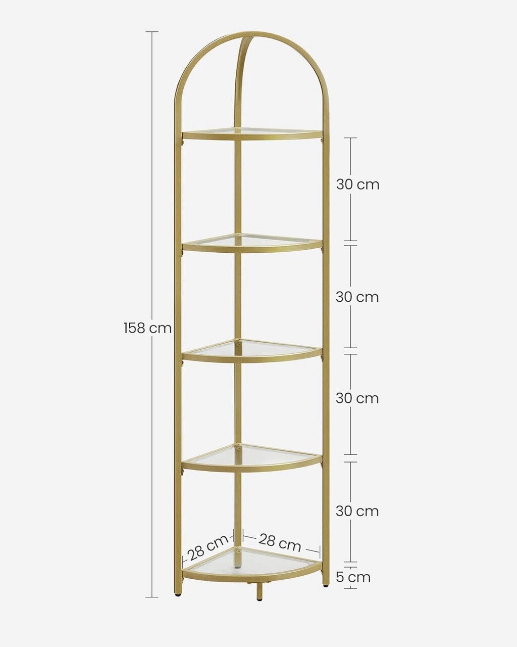 Gold, Vasagle Sarki könyvespolc, 28 x 28 x 158 cm, edzett üveg/acél, aranyszín