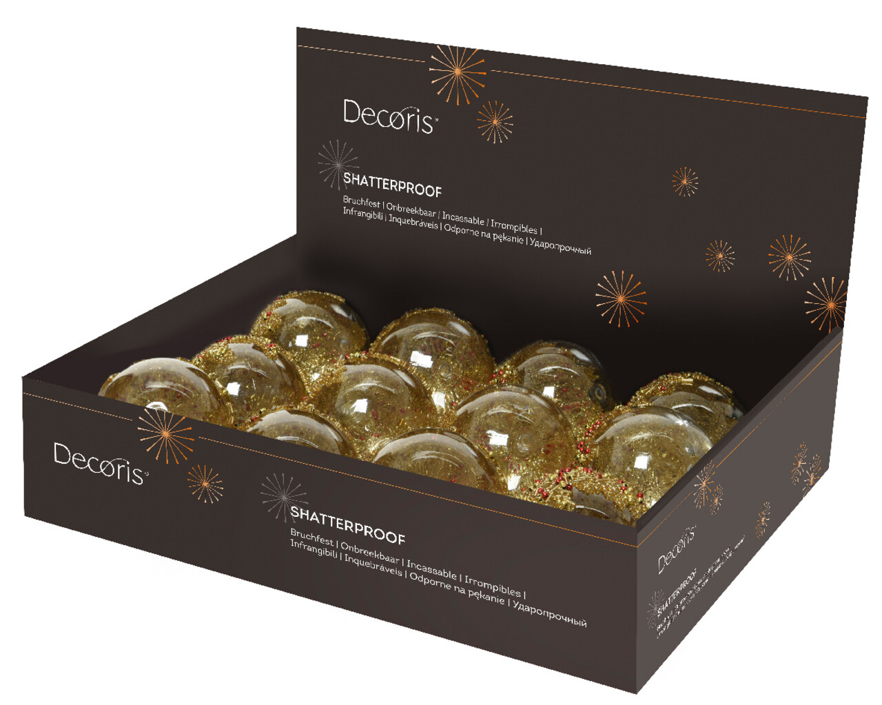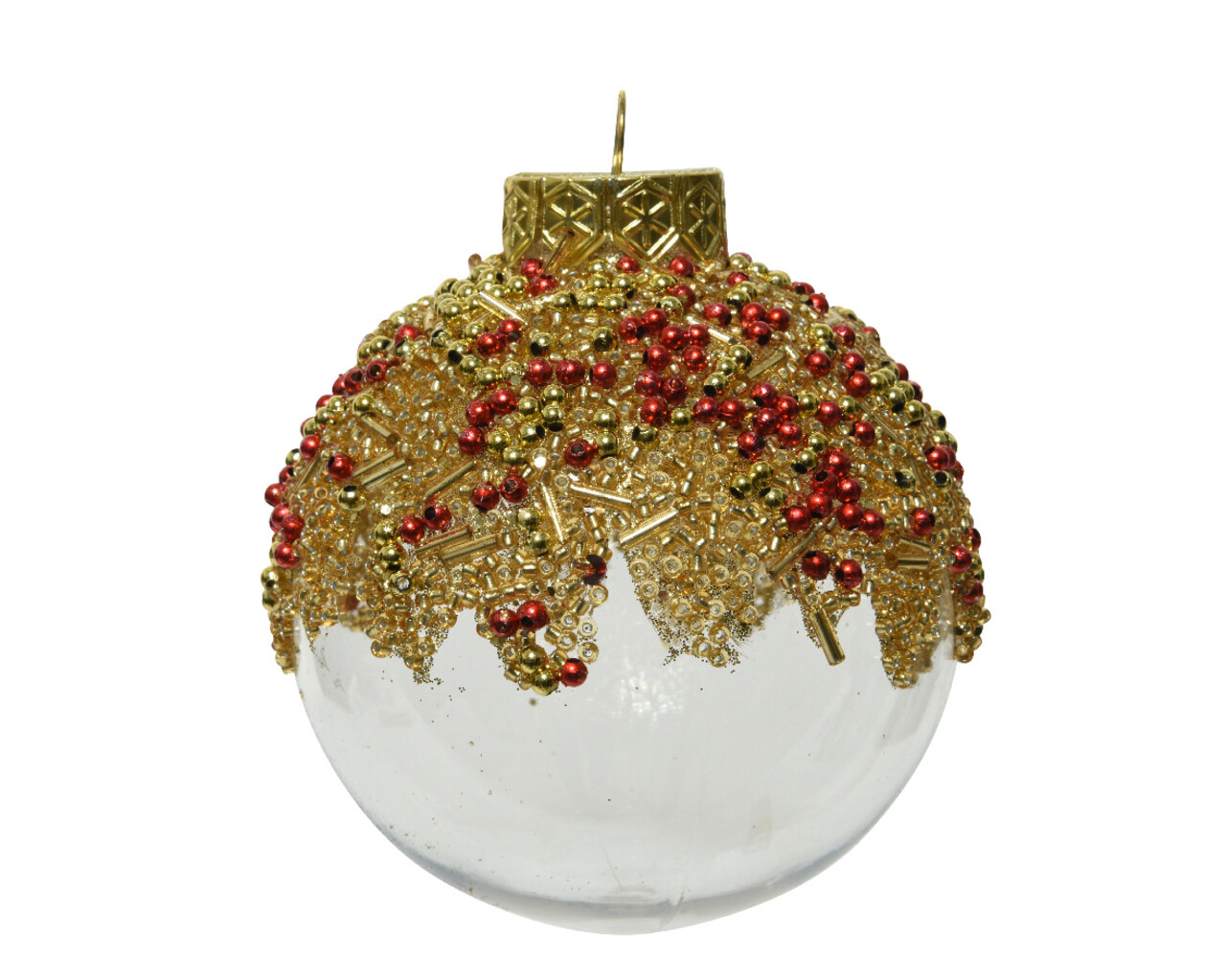 Gömb Arany és vörös gyöngyök, Decoris, Ø8 cm, műanyag, piros / arany