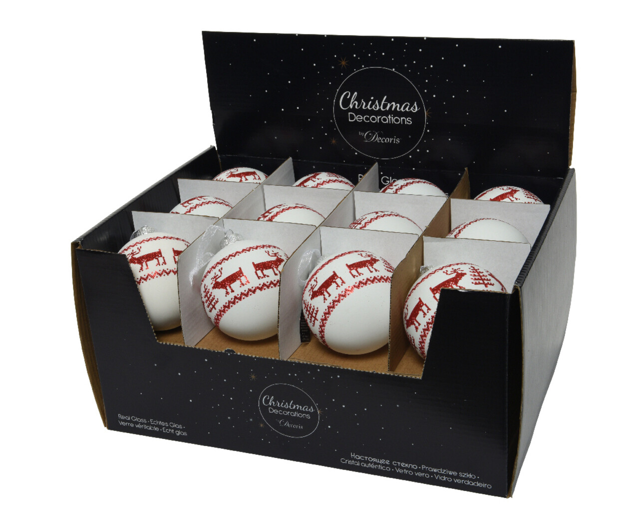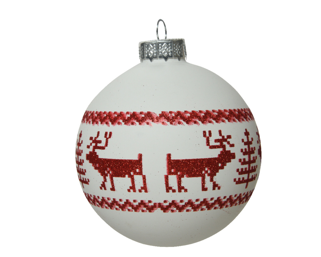 Gömb Bauble red reindeer, Decoris, Ø8 cm, üveg, piros / fehér