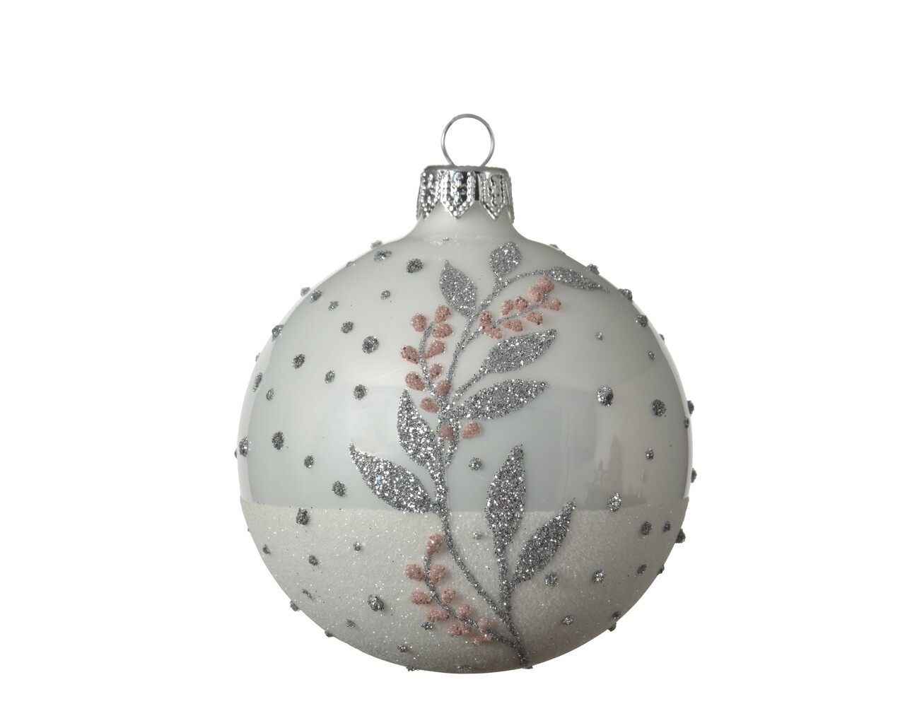 Gömb Branche, Decoris, Ø8 cm, üveg, ezüst