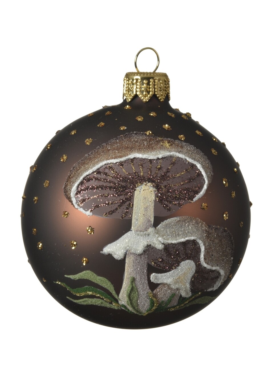 Gömb Gomba, Decoris, Ø8 cm, üveg, sötétbarna