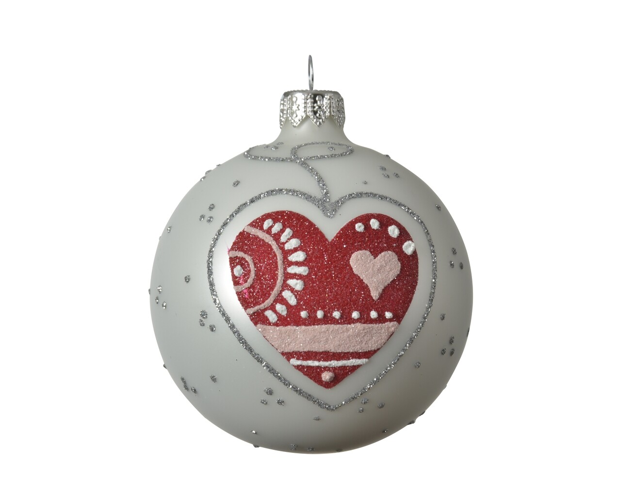 Gömb Heart, Decoris, Ø8 cm, üveg, piros / fehér