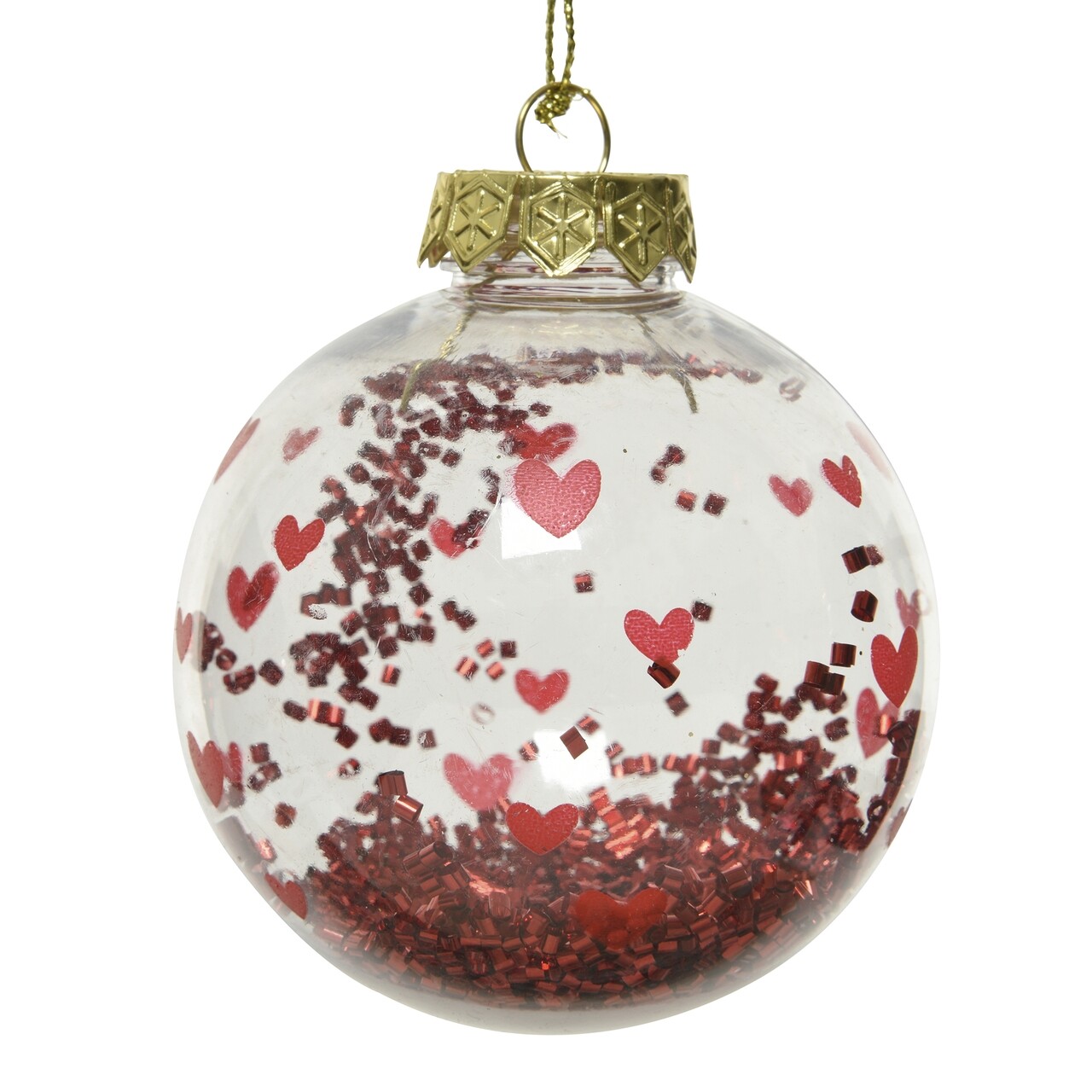 Gömb Heart konfetti, Decoris, Ø8 cm, műanyag, piros
