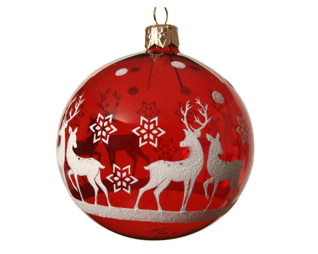 Gömb Rénszarvas csillaggal, Decoris, Ø8 cm, üveg, piros