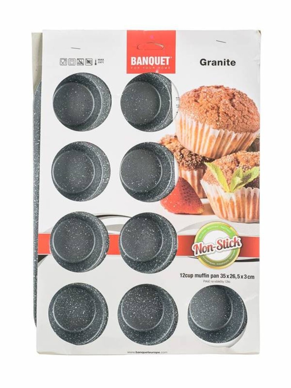 Granite tepsi, Banquet, 35x26,5 cm, szénacél, 12 db muffin