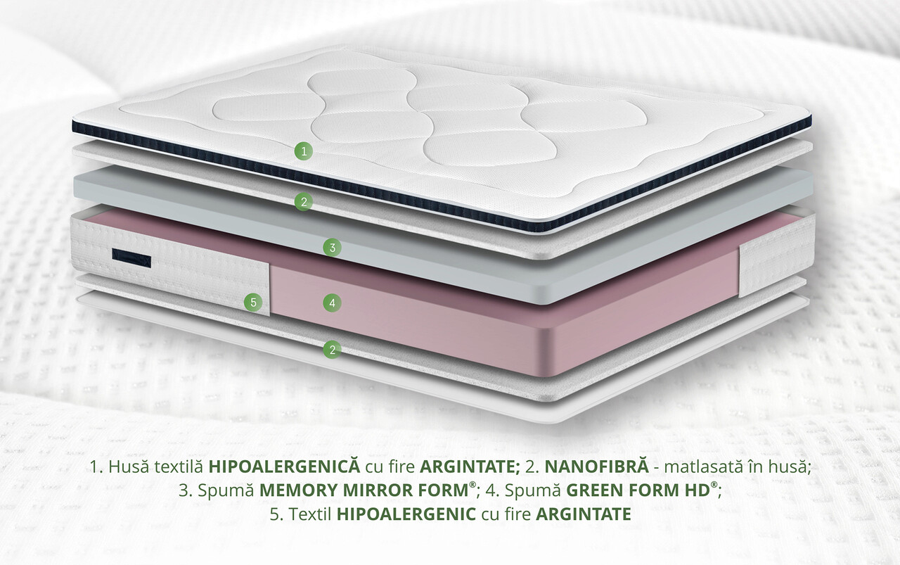 A Life 180x200 matrac minden éjjel lebegteti! A burkolat térfogati szövetből készült a megfelelő szellőzés érdekében, és ezüst kapszulával kezelik az antimikrobiális és atka elleni védelmet. A nanoszálas matrac a Free Air 3D rendszerrel együtt biztosítja a hőérzetet és a kiváló szellőzést alvás közben. A matracot két oldallal, különböző szilárdsággal tervezték, hogy tetszés szerint aludhasson: lágyabb arc, amelyben elmerül a matracban nanoszálas és Memory habbal, valamint szuper-ortopédiai arc szuper rugalmas poliuretánnal. Romániában készült.