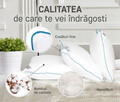 A Life 40x40 párna az egyetlen párna, amely nagyon közel áll a libatollal töltött párna jellemzőihez, és ennek célja a méhnyak területének megfelelő támogatása. A szövet kiváló minőségű pamutból készült. A töltelék nanoszálas, az összes ismert szintetikus szál legfinomabb és legerősebb. A nanoszál az egyetlen szintetikus szál, amely nagyon közel áll a libatojás tulajdonságaihoz: termikus kényelem, lágyság, rugalmasság, szellőzés. Ezenkívül tökéletes allergiások számára. Az életpárna bolyhos, hipoallergén és mosható. Romániában készült.