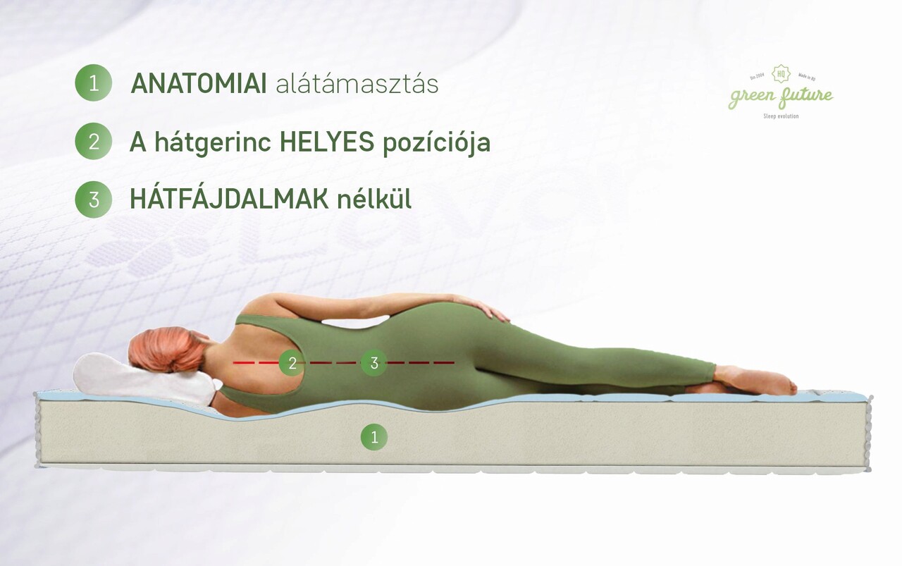 • Minden alvási helyzethez alkalmas: hátra, oldalra és hasra