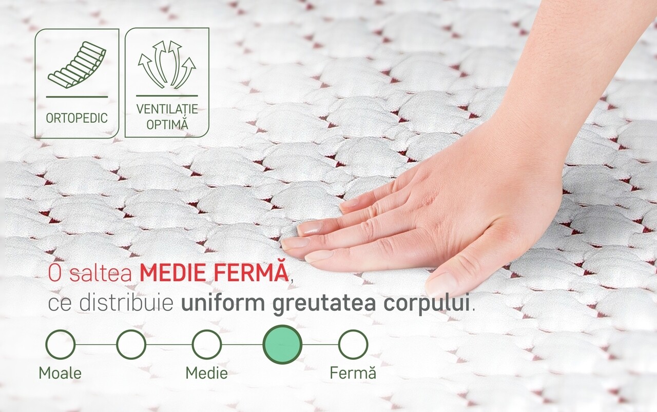A rugalmas poliuretán hab szerkezet izomlazítást és jó vérkeringést biztosít. A szerkezet rugalmasságát úgy tervezték, hogy biztosítsa a gerinc természetes helyzetét alvás közben.