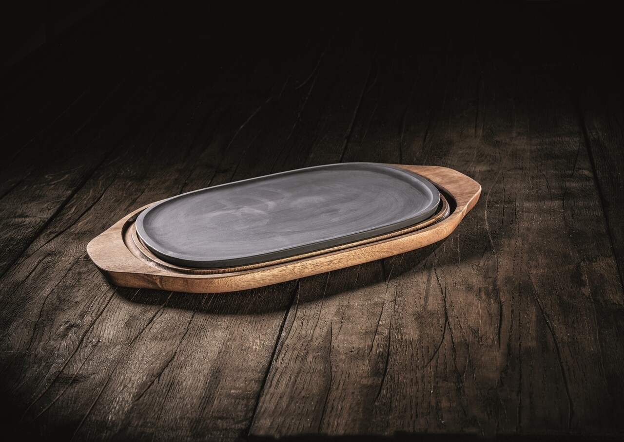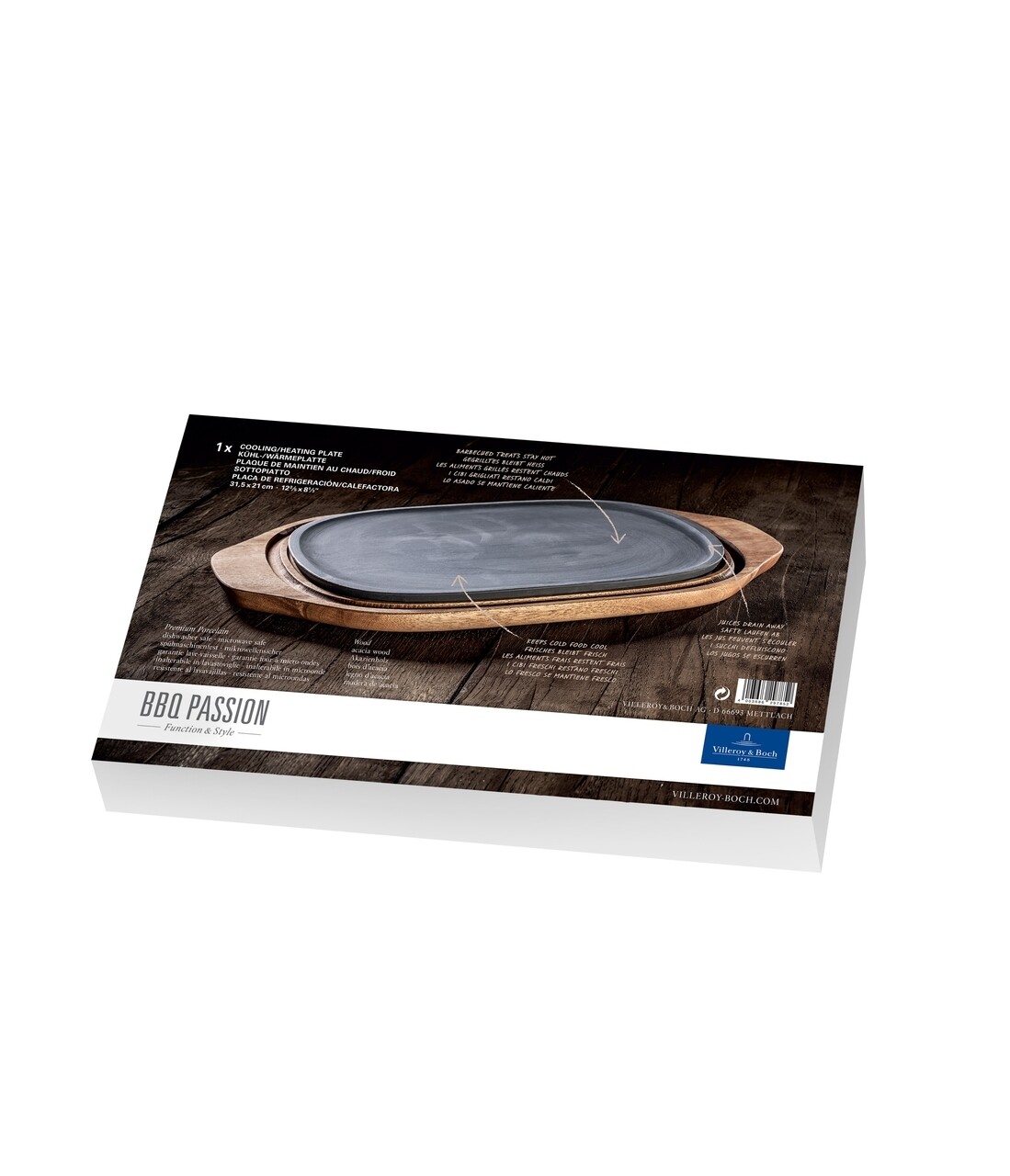 Grilltartó fa tartóval, Villeroy & Boch, BBQ Passion, 21 x 31,5 cm, akác / prémium porcelán