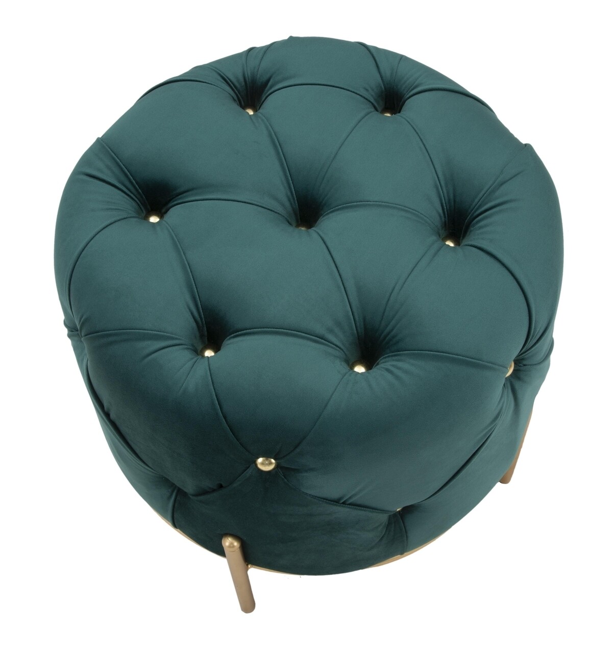 Elegáns széklet MDF-ből és zöld bársonyból arany részletekkel. A bársony kiválóan a retro glam stílusú szövet. Kifinomult és barátságos, finom és szüreti luxust szimbolizál.