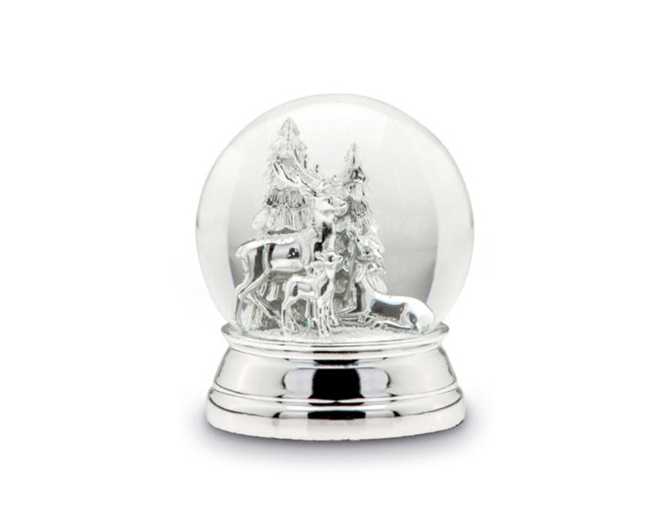 Hermann Bauer Hógömb, Deer and Trees, 12 x 10 cm, poligyanta, ezüstszín/fehér