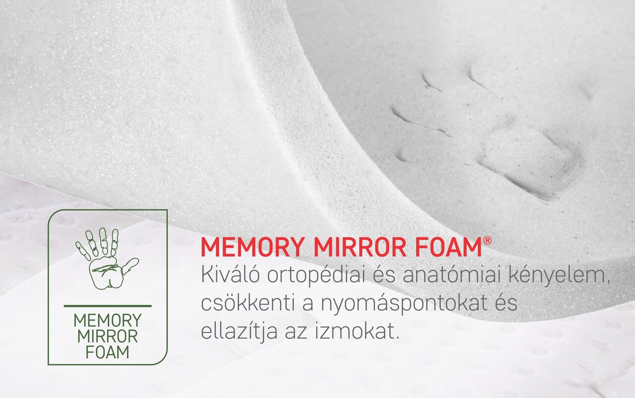 Az 5 cm-es Memory Mirror Form® habréteg reagál a testhőre és a testhez idomul, így alvás közben kiküszöböli a nyomáspontokat, ellazítja az izmokat és biztosítja a megfelelő vérkeringést.