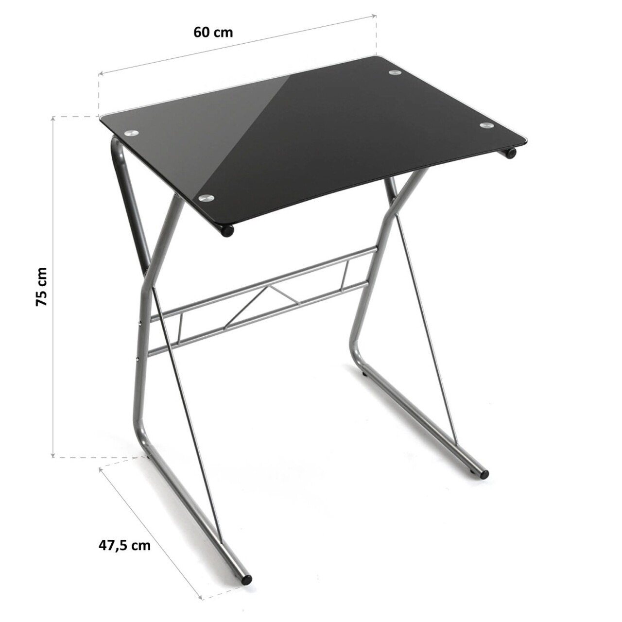 Jaycee Íróasztal, Versa, 60x47.5x75 cm, üveg/fém, fekete