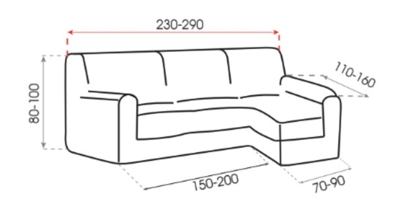 A teljes hossza 230 cm és 300 cm között van.