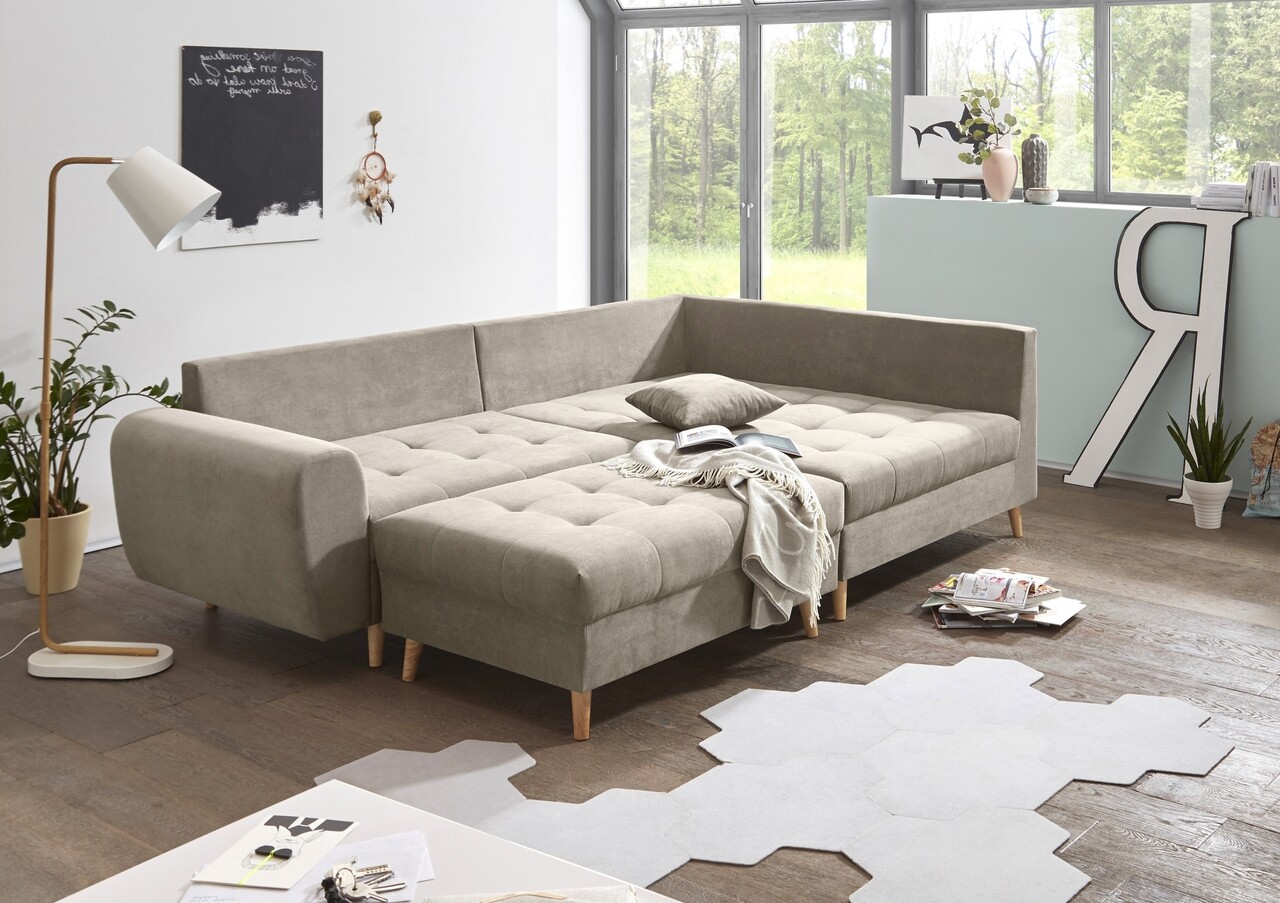 Kanapé jobb sarokkal Alice , 3 ülés, 249 x 175 x 94 cm, forgácslap / fa / poliészter, homok