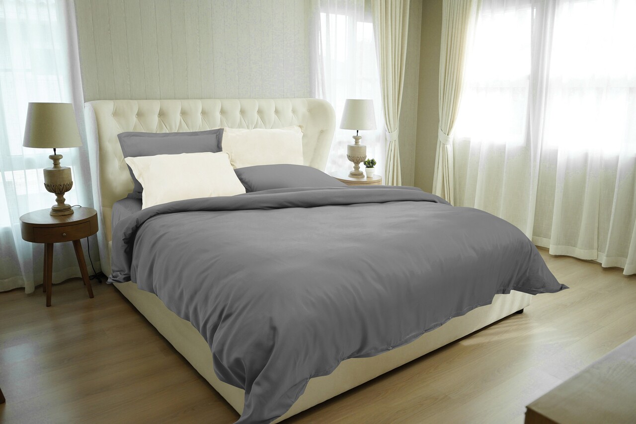 Kétszemélyes ágynemű, 100% Bambusz, 6 darabos, 200x220 cm, szürke/elefántcsonszín