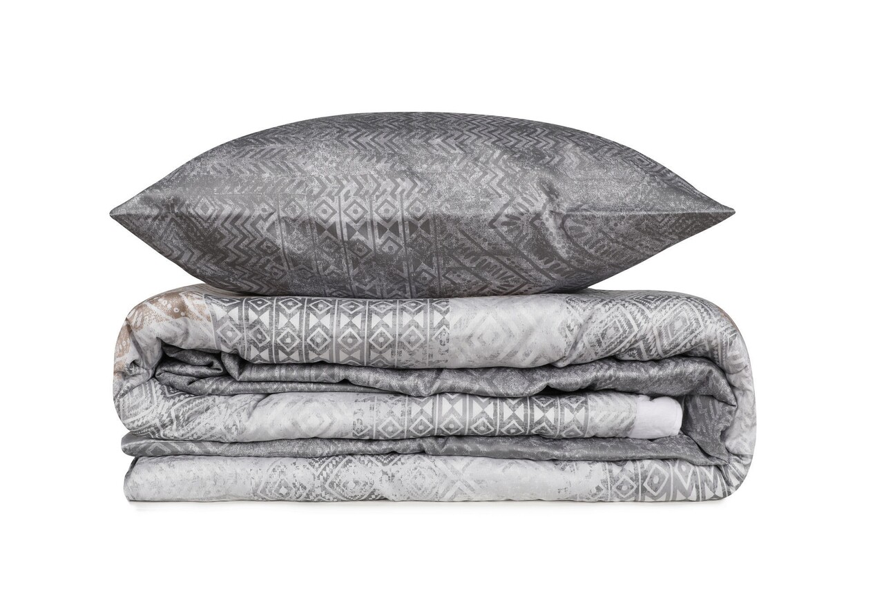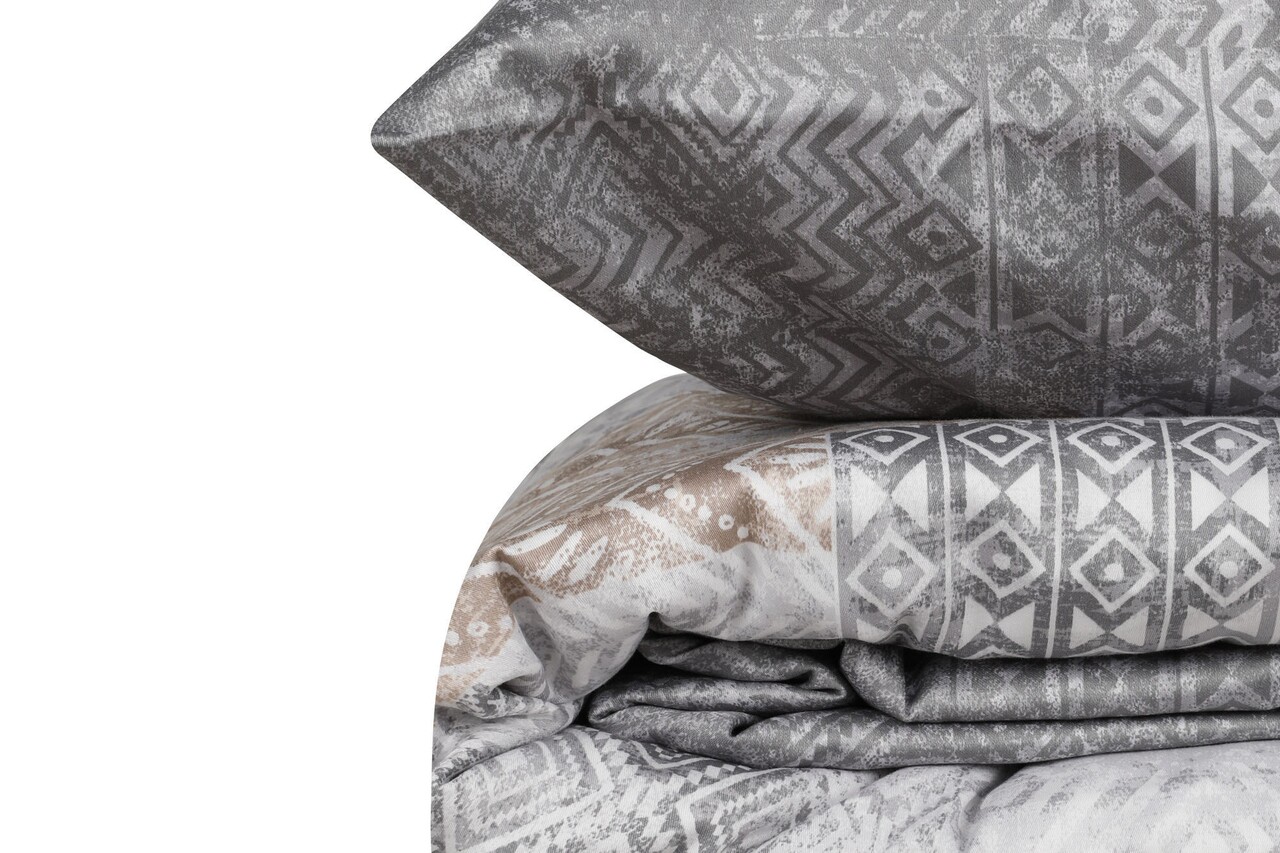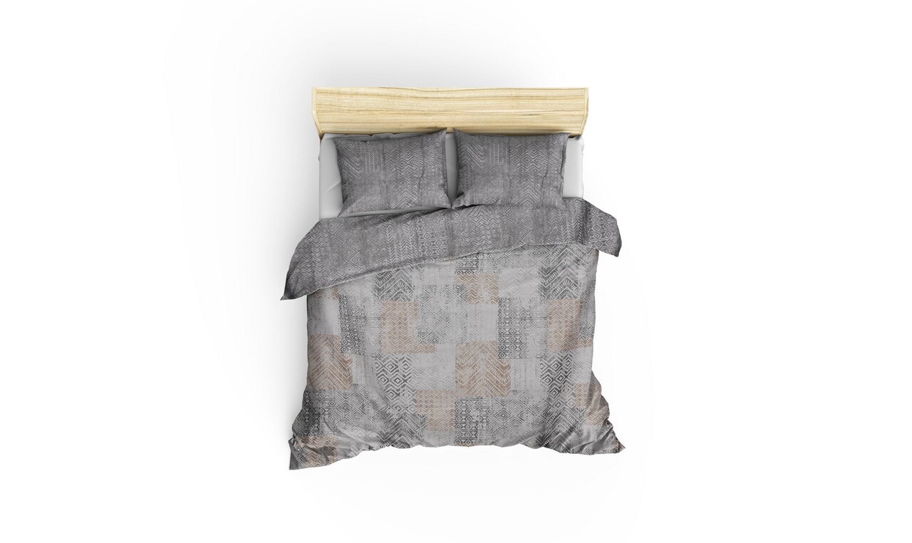 Kétszemélyes ágynemű, 6 darabos, 200x220 cm, 100% szatén pamut, Cotton Box, Amentes, szürke