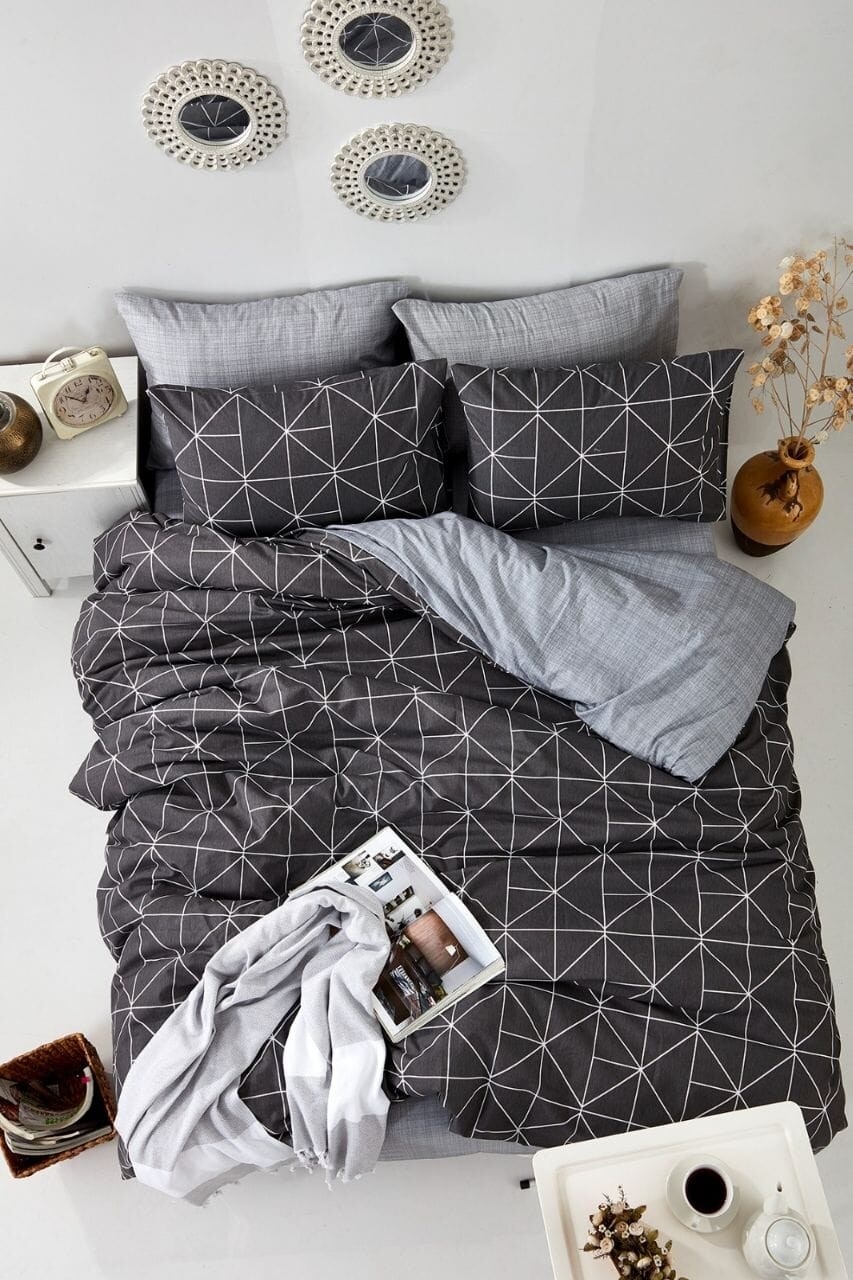 A készlet tartalma: Paplanhuzat 200 x 220 cm; Lepedő 220 x 240 cm; 2 párnahuzat 50 x 70 cm.