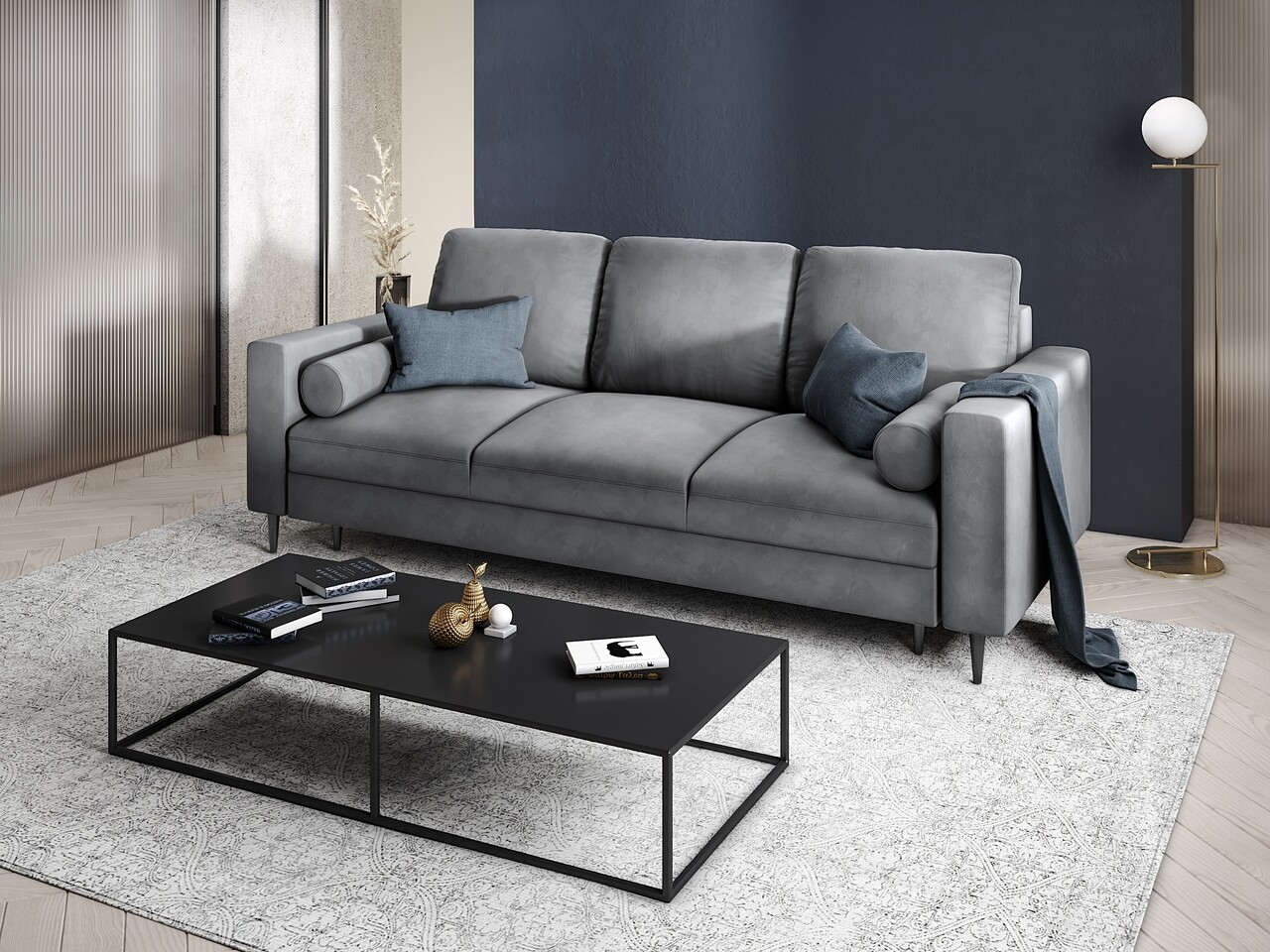 Kihúzható kanapé, Camellia, Mazzini Kanapék, 3 ülőhely, tárolódobozzal, 220x100x92 cm, bársony, világosszürke
