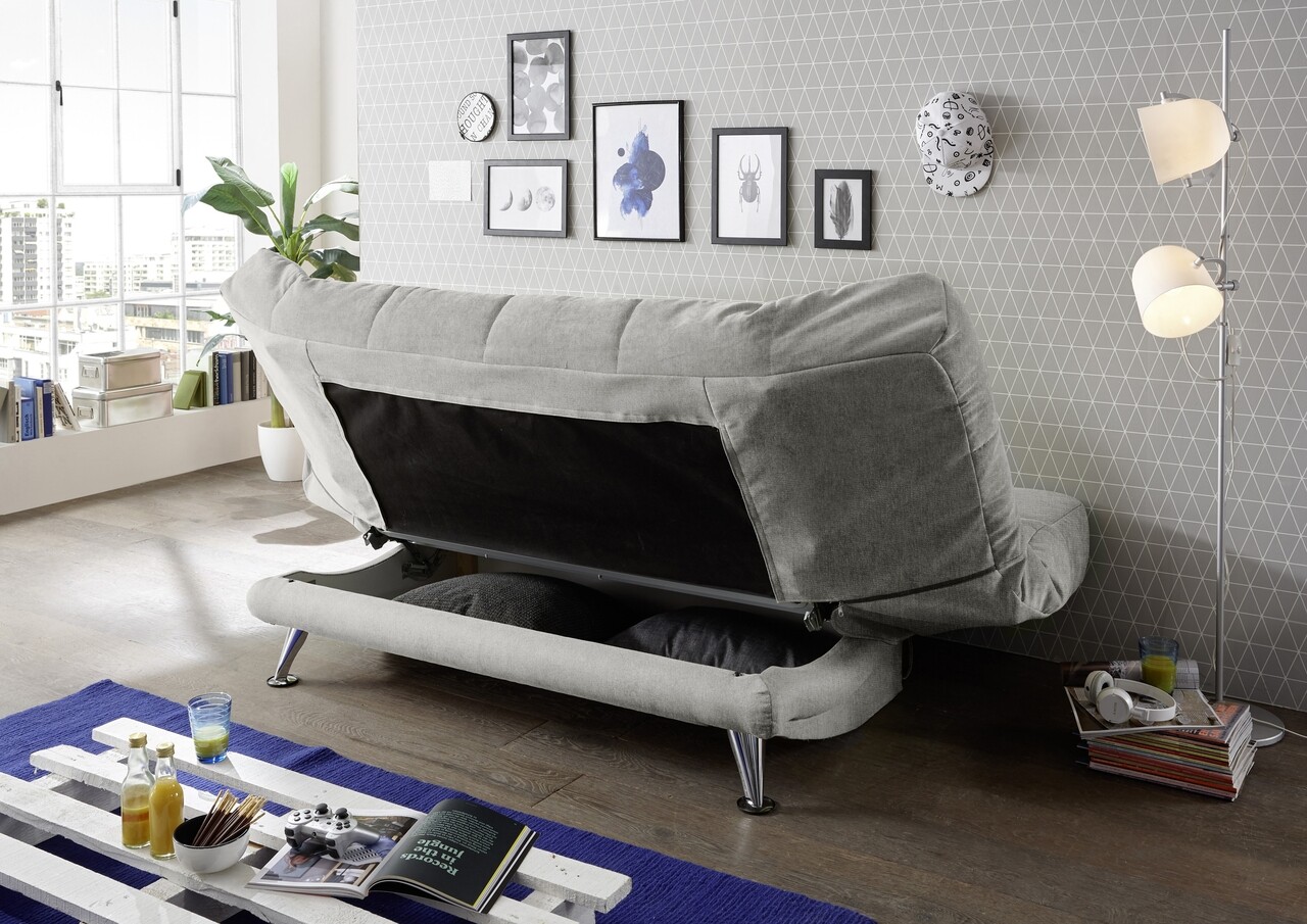Kihúzható kanapé, Ikar Schlamm Grey, 98 x 102 x x 208 cm, PAL / fém / poliészter