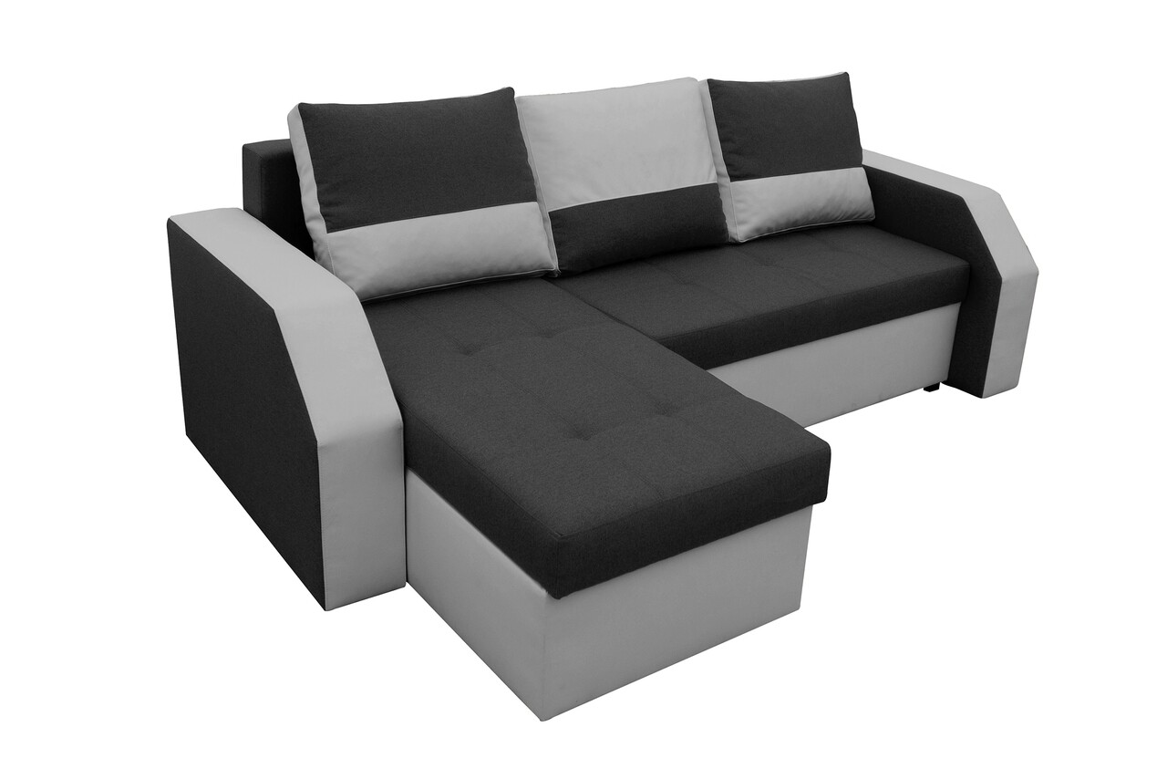 Kihúzható Sarokkanapé Madrid, 226x145x79 cm, 2 tárolóláda, Megfordítható, Szürke/Fekete