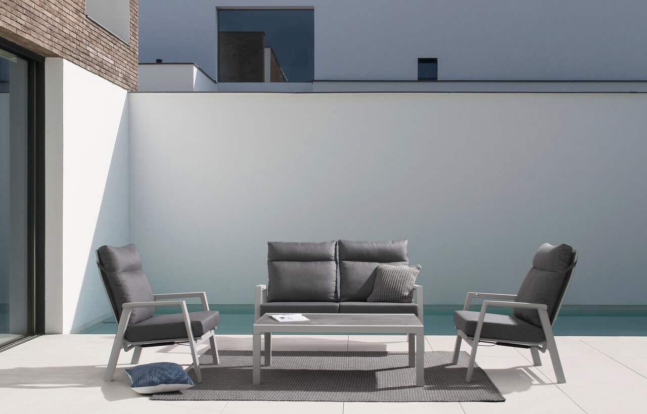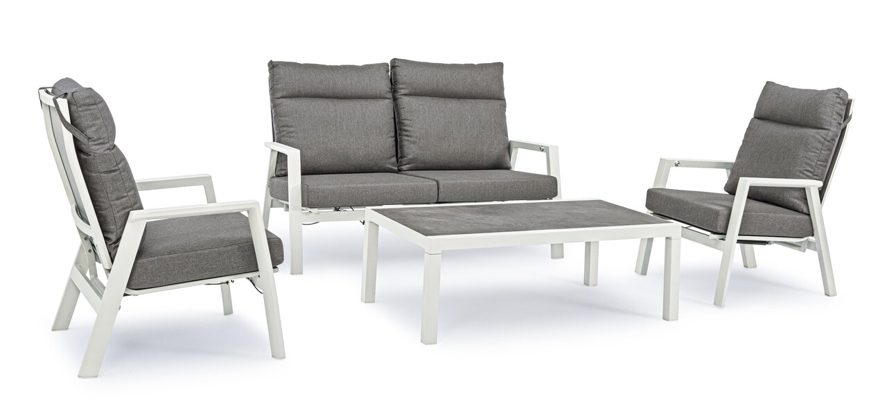 Kledi Lunar Kerti kétszemélyes kanapé, Bizzotto, 152 x 81 x 98 cm, állítható hátrész, alumínium/textil 1x1, szürke