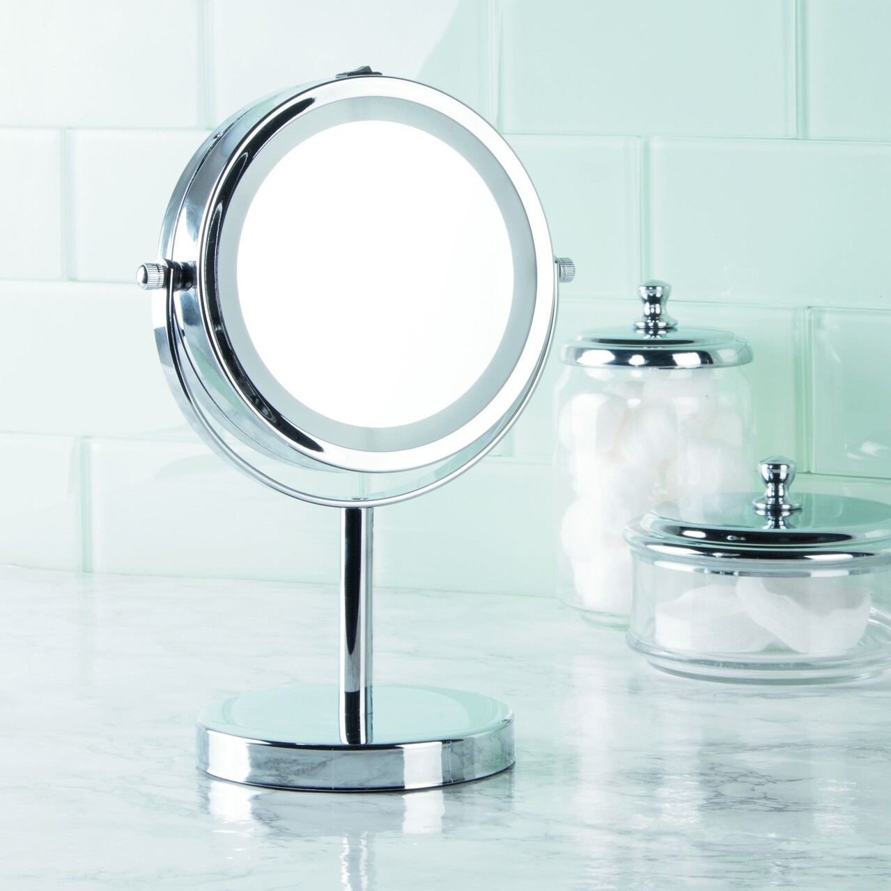 A kozmetikai tükör két arccal rendelkezik, kétféle nagyítással: 1x és 3x.