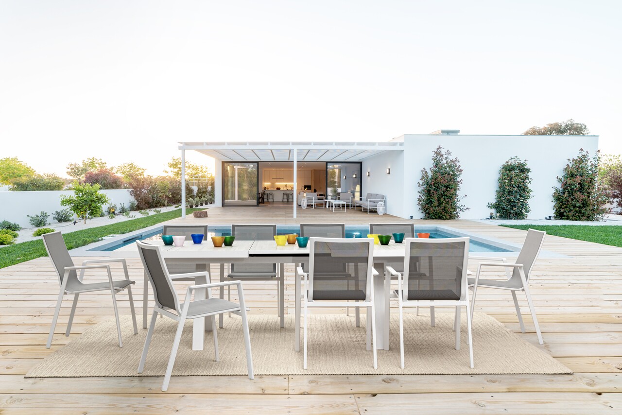 Krion Kihúzható kerti asztal, Bizzotto, 205-265 x 103 x 78 cm, alumínium/kerámia, fehér