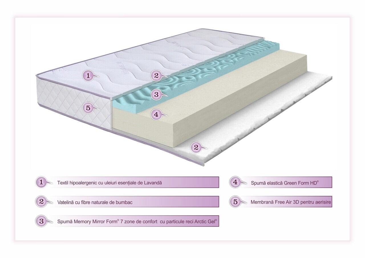 A Green Future és az ortopédiai szakemberek által kifejlesztett Lavender Therapy PLUS matrac ötvözi a Green Form HD® rugalmas hab ortopédiai tulajdonságait a Green Therm Memory hab, az Arctic Gel® hideg részecskék és a levendula illóolajok stressz elleni tulajdonságaival. .