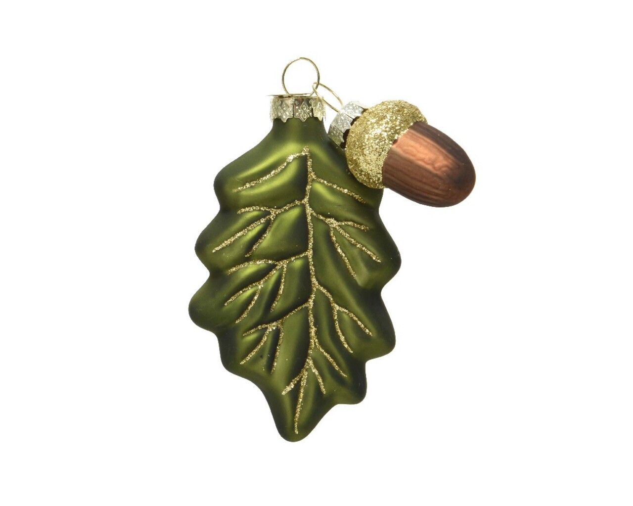 Leaf w acorn Díszgömb, Decoris, 7x2x10.5 cm, üveg, zöld