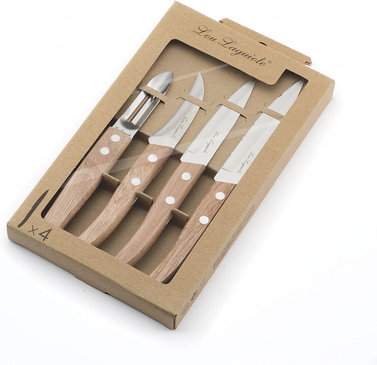 Lou Laguiole 4 db Alapvető kés, Essentials Forest, rozsdamentes acél/fa