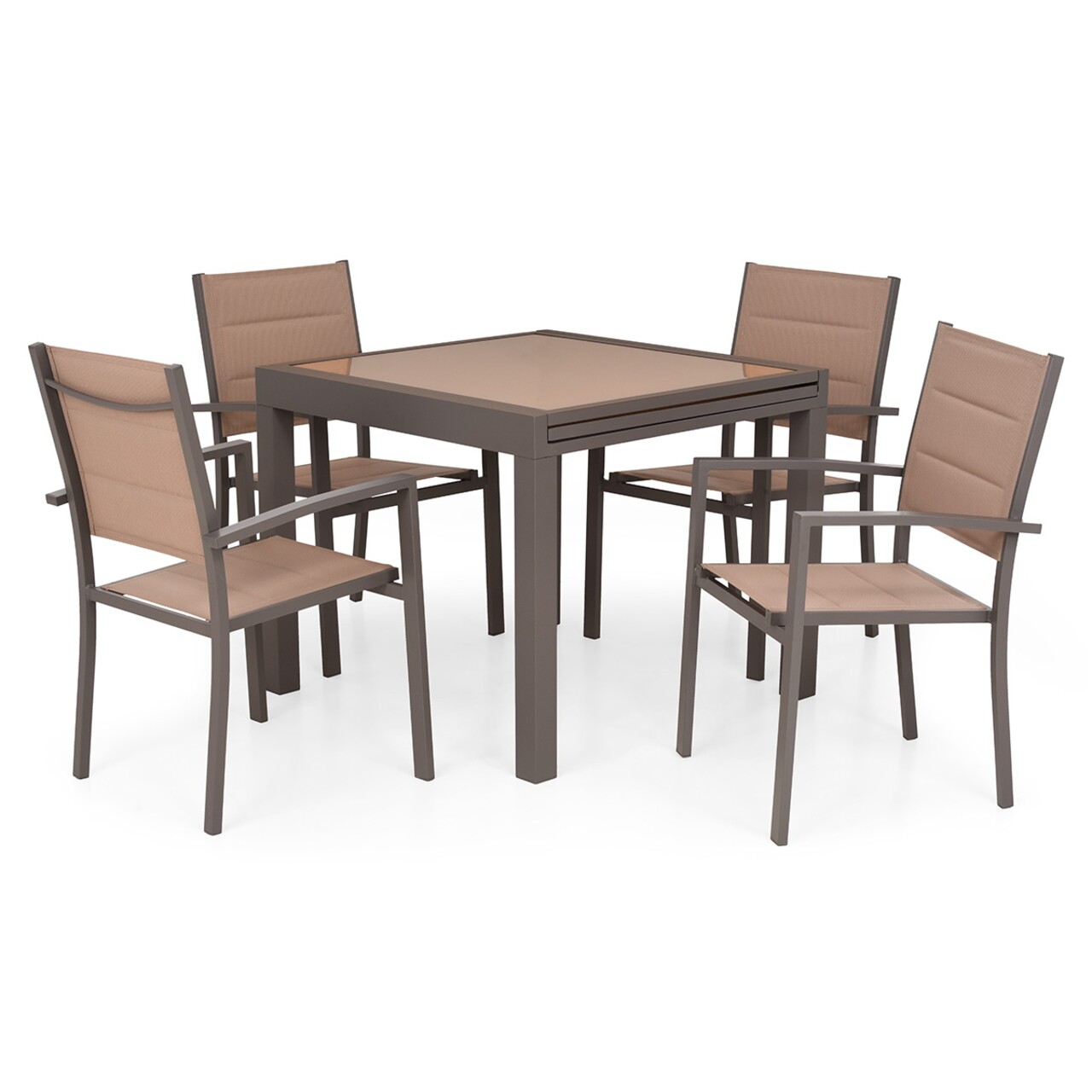 Lucca 4 db Szék és kihúzhatós asztal, alumínium, barna