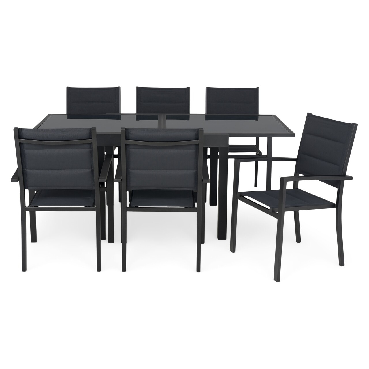 Az elektrosztatikusan festett alumínium vázra készült Lucca sorozat darabjai egyformán erősek és vonzóak. A székek ülése és háttámlája UV-kezelt textilből készült, a további kényelem érdekében szilikonvattaréteggel. Az asztallap 5 mm vastag, festett, edzett üvegből készült. Ráadásul nagyon könnyen karbantarthatók, így emiatt nem kell aggódnia.